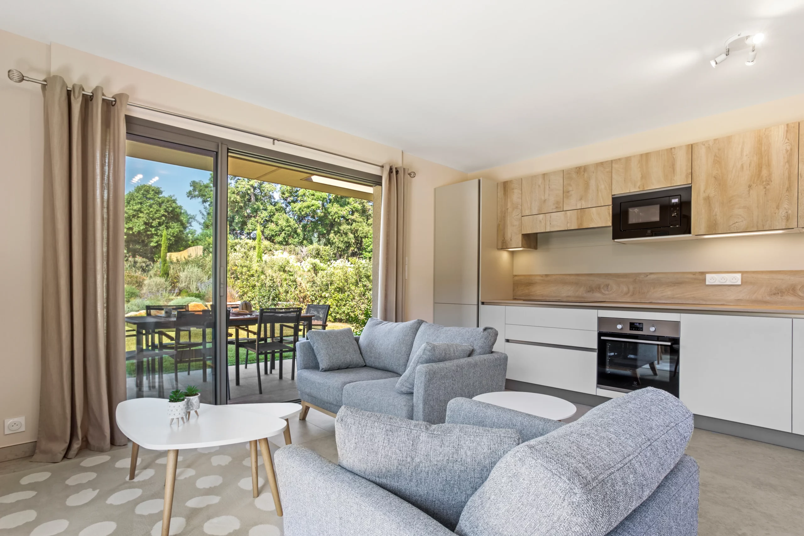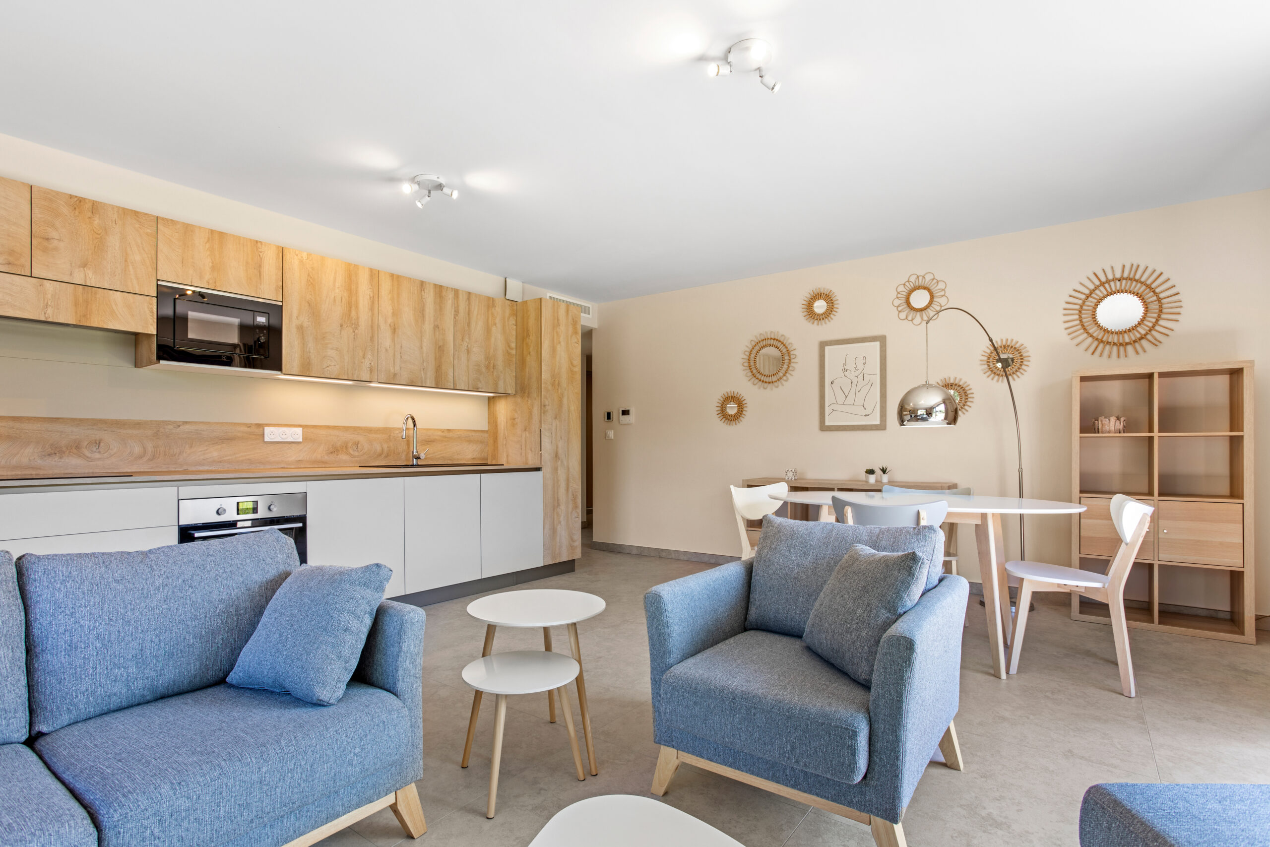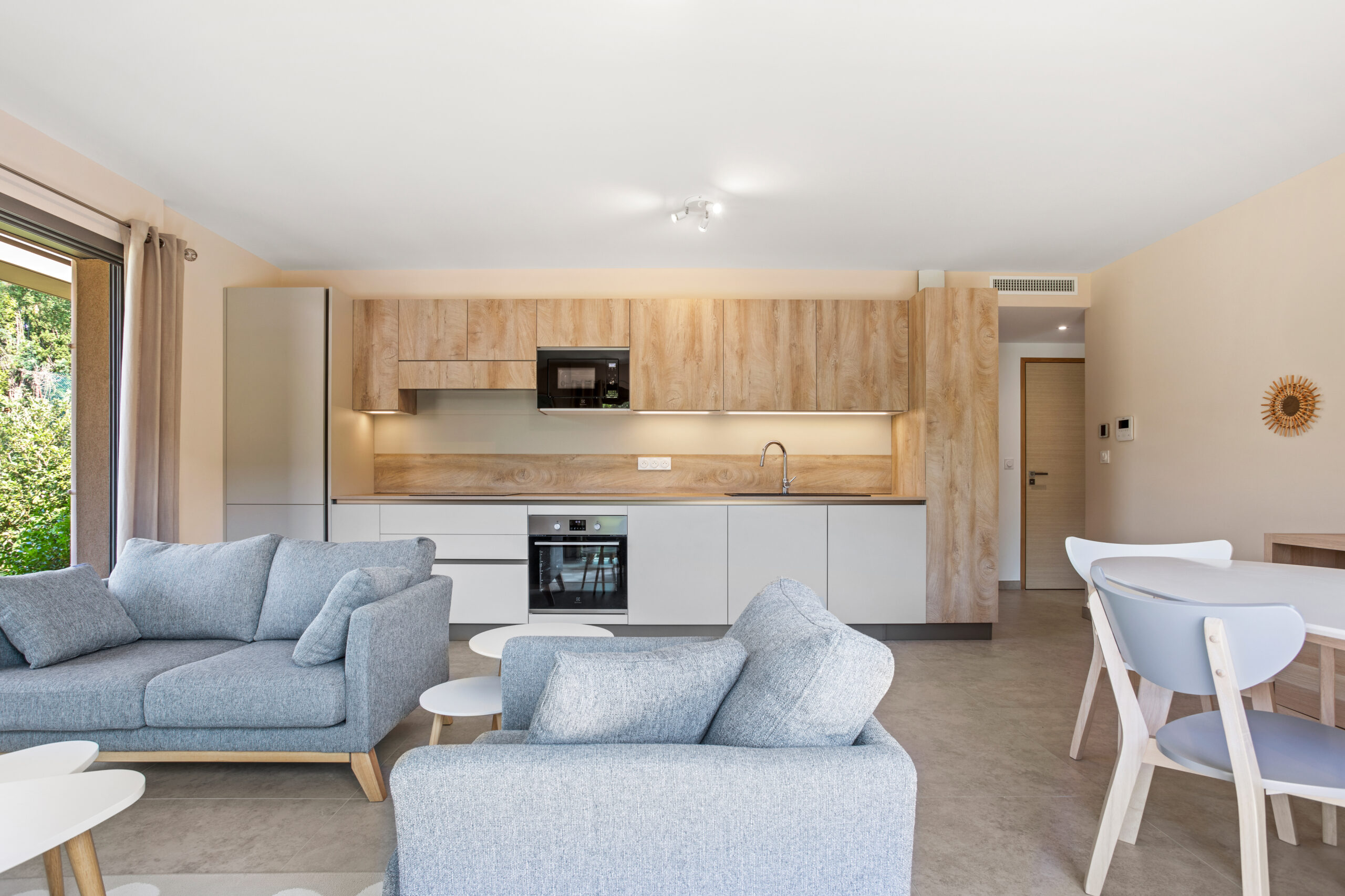 Situé dans une résidence neuve, la décoration est en accord avec le lieu.